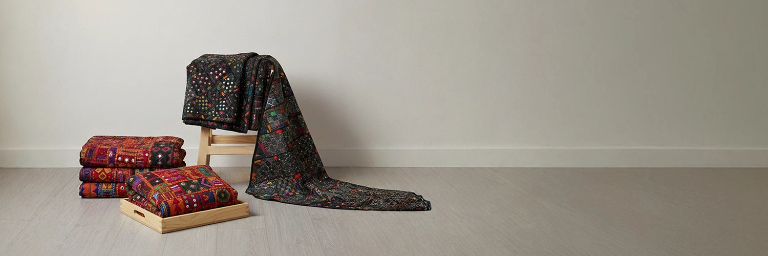 Embrace the rich heritage of hand-stitched Ralli Quilts, each piece a vibrant reflection of ancient craftsmanship. Ideal for collectors and those seeking to infuse history and tradition into their home.