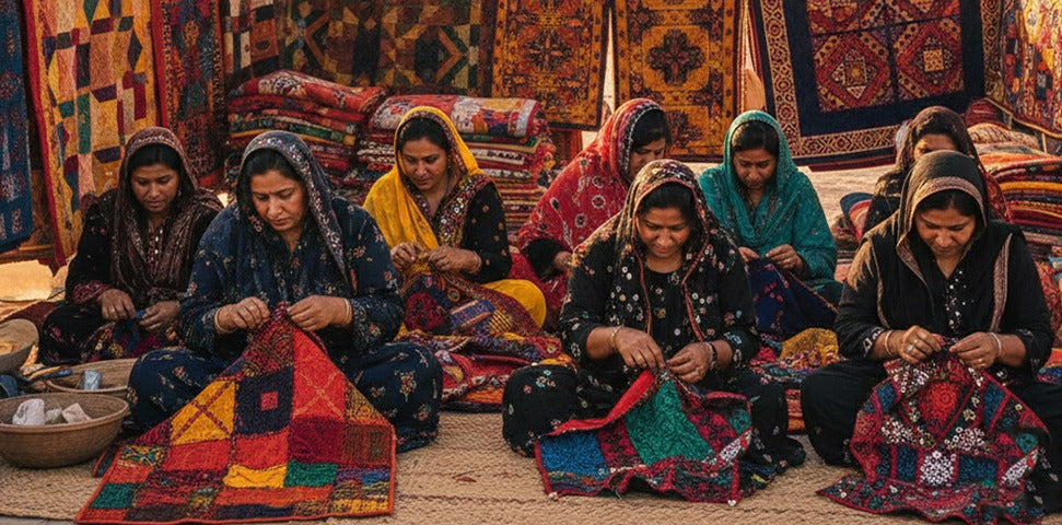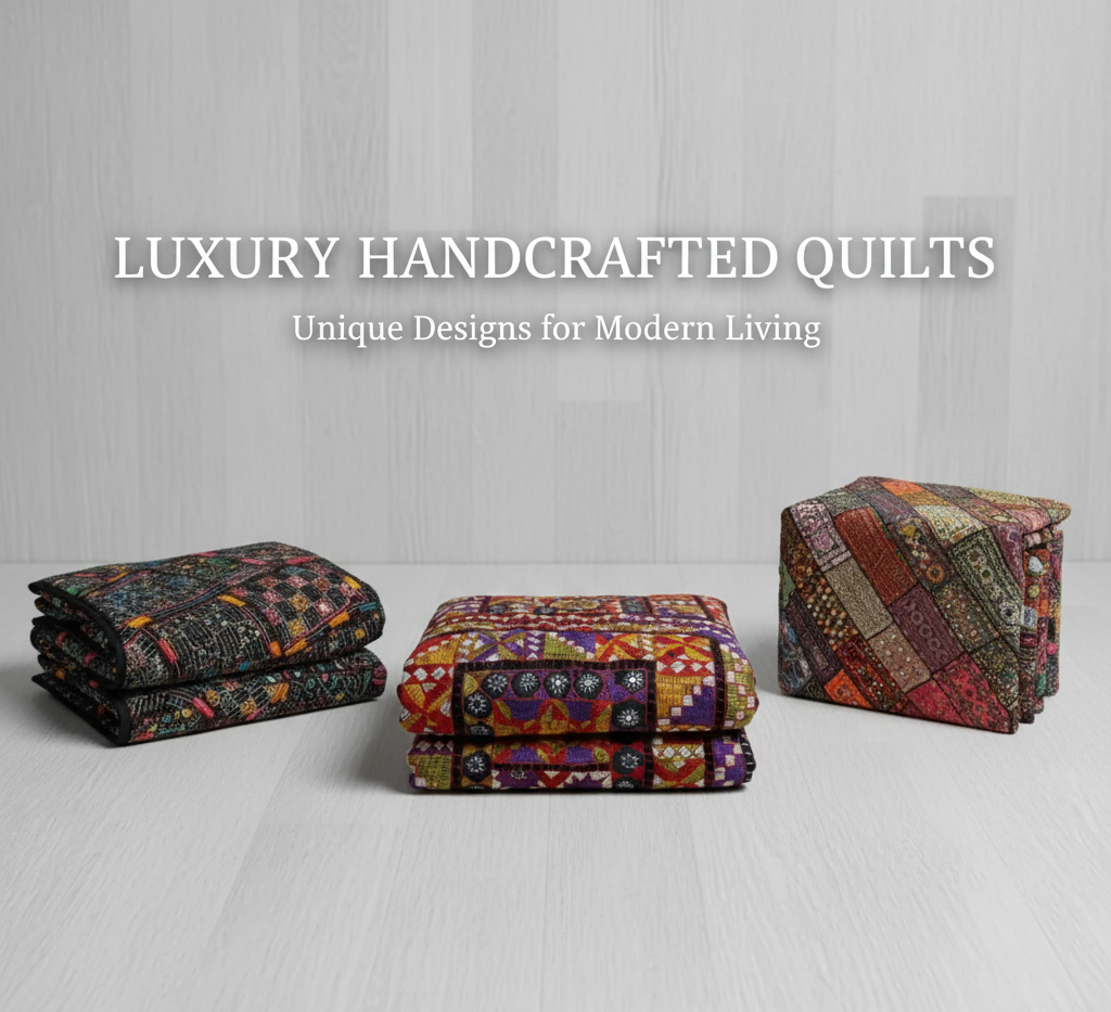 At Batuta Market, our Ralli quilts come from the Thar Desert of Sindh, Pakistan, where skilled craftsmen and craftswomen create each piece handcrafted, just as they always have. Every patch is embossed and attached by hand, and all thread work is completed with care, rhythm, and patience. These quilts reflect bold color, living tradition, and craftsmanship that never rushes. No two quilts are exactly alike, because the people who make them aren’t machines, they’re artists.